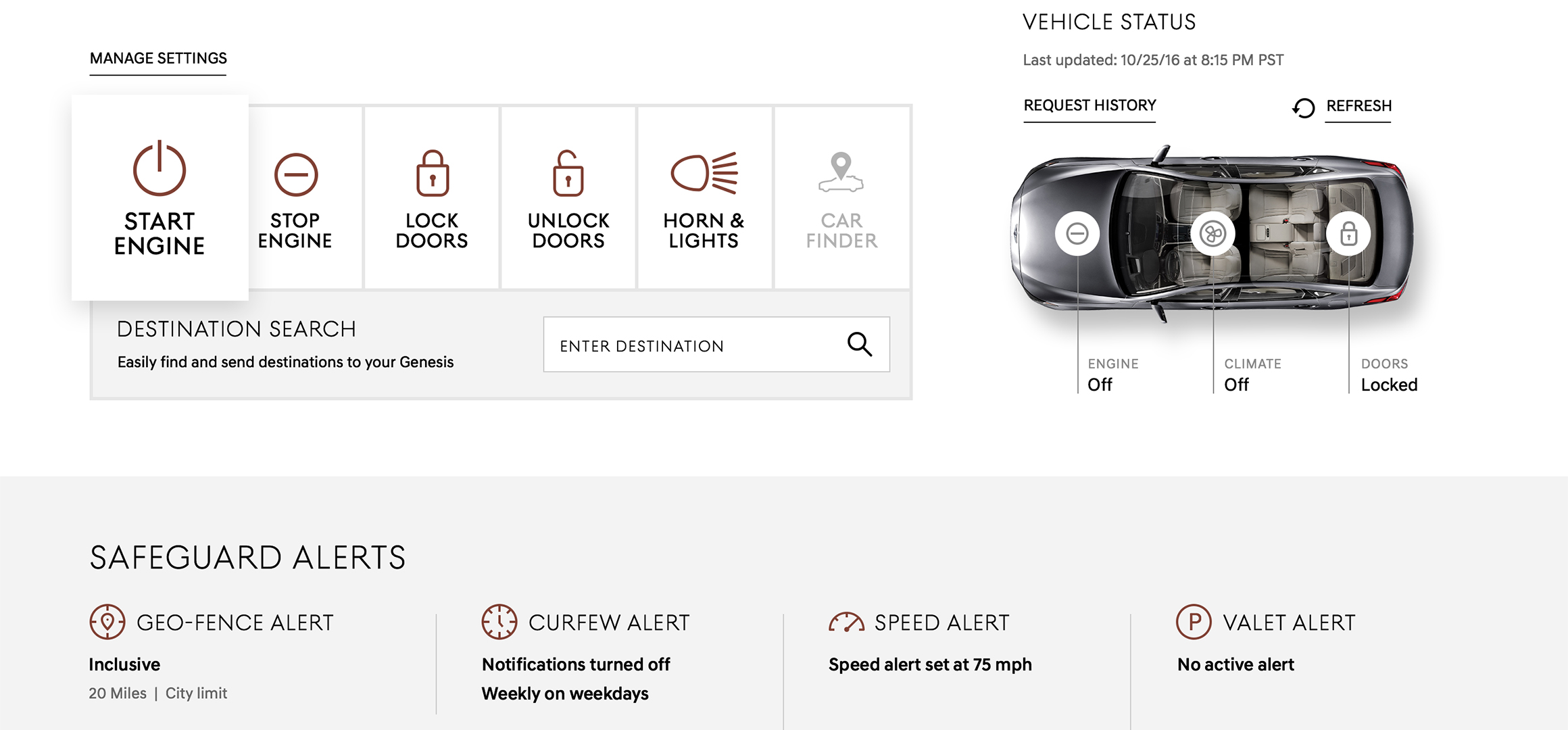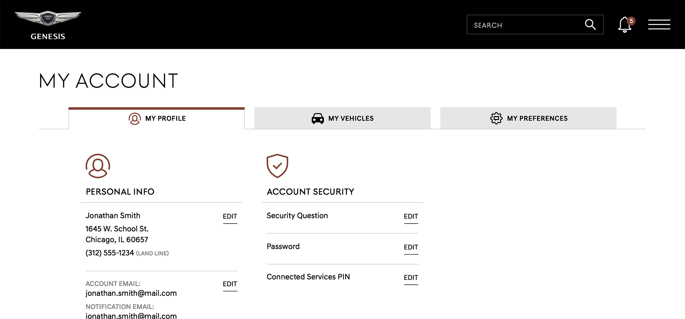Having a MyGenesis account provides you access to one dedicated section where all of your security settings, preferences and vehicle information are stored.
